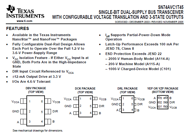 TI德州仪器 SN74AVC1T45DBVR 丝印:DT1R 逻辑芯片 SOT23-6