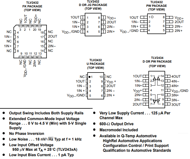 TI 德州仪器 TLV2434A 轨至轨输出、宽输入电压四路运算放大器 SOIC|14, TSSOP|14