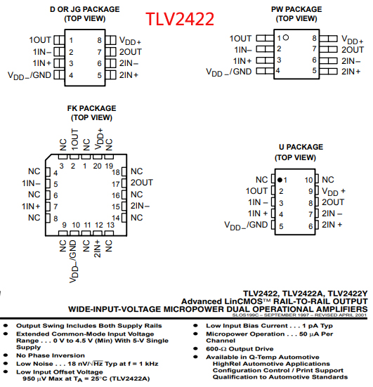 TI 德州仪器 TLV2422M 双路宽输入电压微功耗轨至轨单电源工作运算放大器 CFP|10