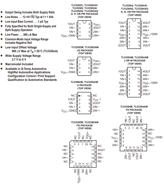 TI 德州仪器 TLV2262A 高级 LinCMOS™ 轨至轨双路运算放大器 PDIP|8, SOIC|8, TSSOP|8
